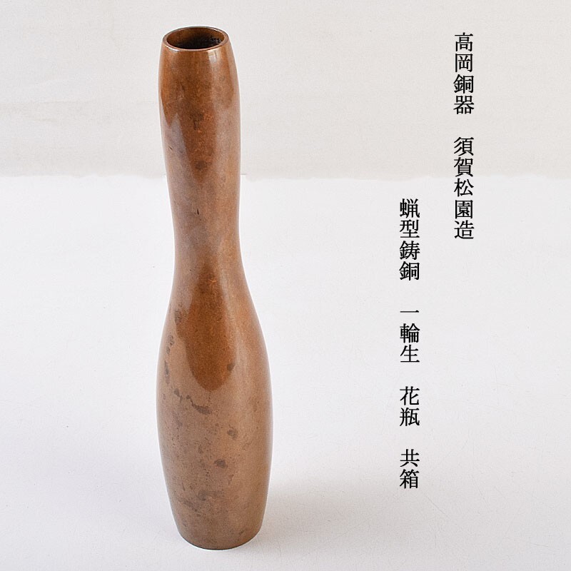 - 高岡銅器 須賀松園造 蝋型鋳銅 一輪生 花瓶 共箱 AYWC