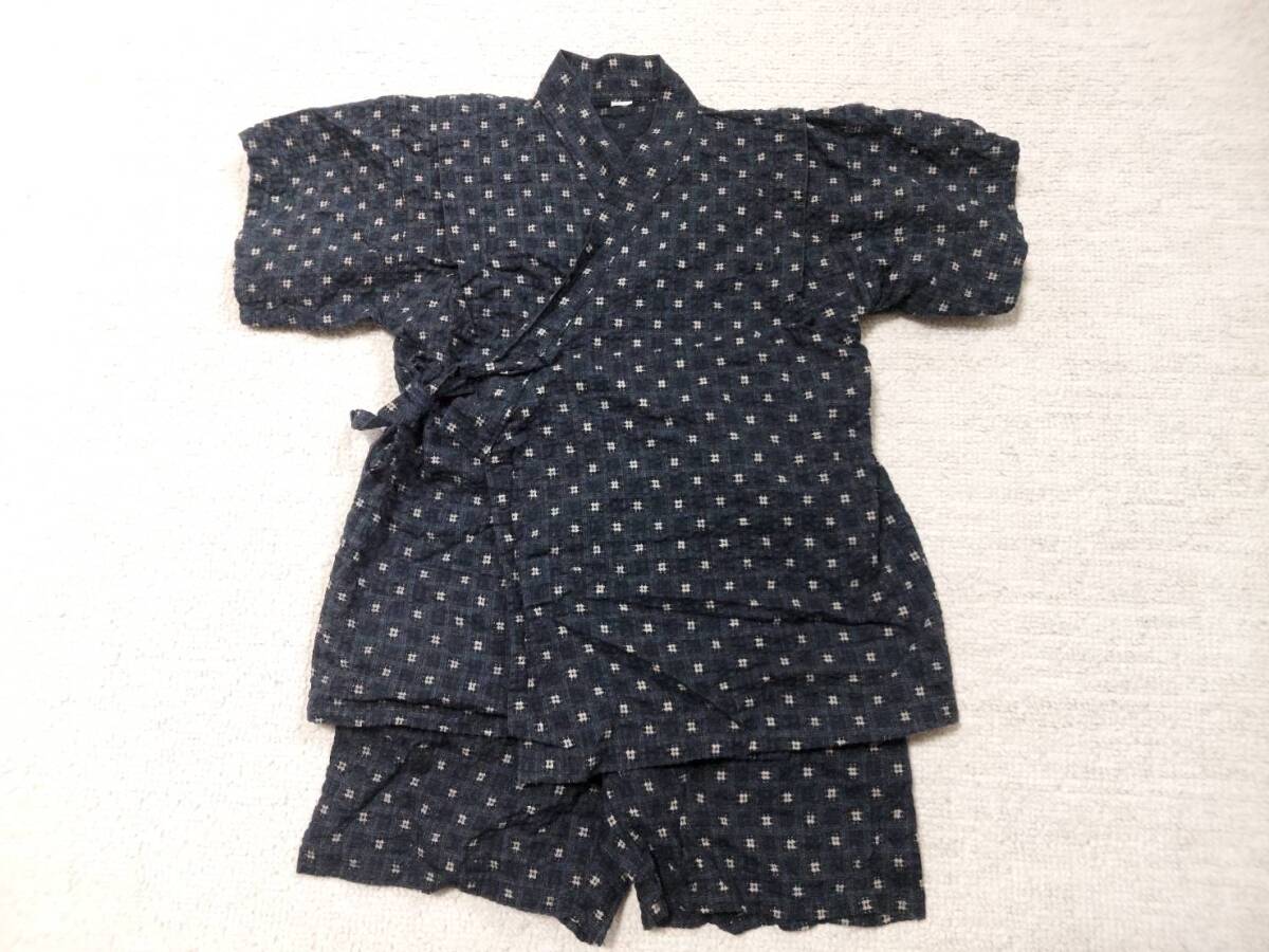 - USED☆井桁格子柄 甚平 ズボン付き 95サイズ ネイビー 記名なし