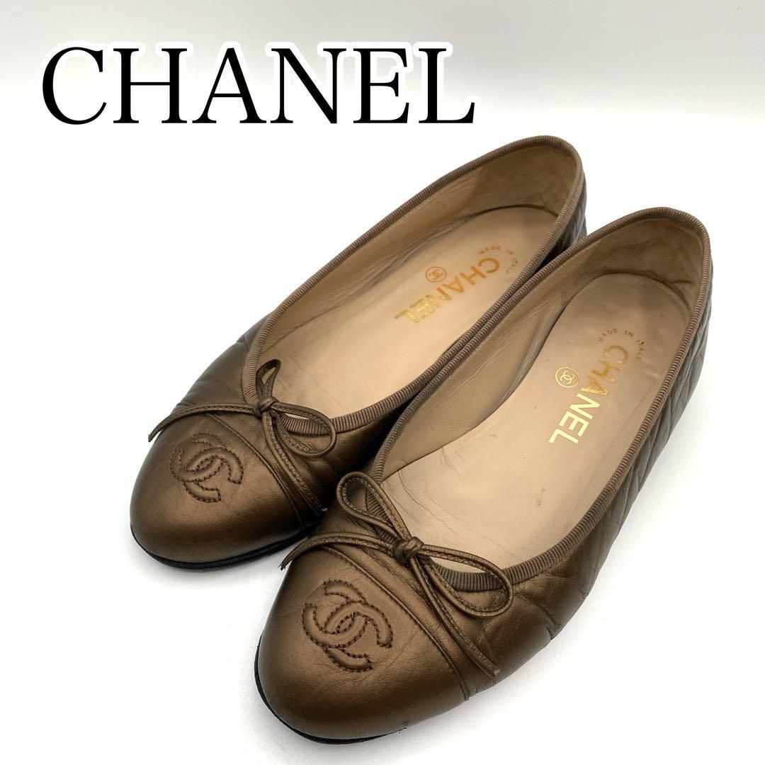 - CHANEL シャネル ブラウン フラットシューズ レザー ココマーク 22.5㎝