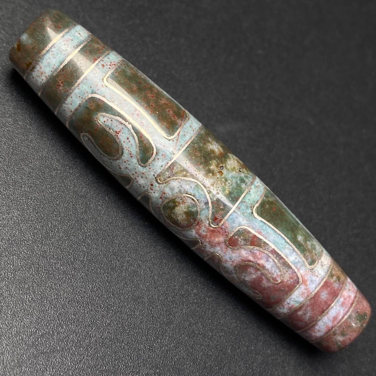 - 蔵友旧蔵出 瑪瑙製 細密彫 銀絲嵌 滿朱砂 法器天珠 高油包漿 根付裝身具 希少珍品 貴重品 置物 古賞物 中国古玩 中国古美術品