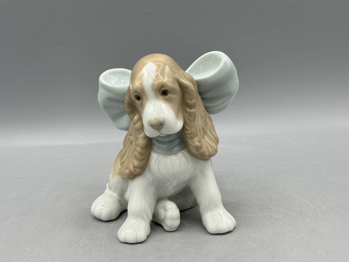 - * リヤドロ ナオ 犬 リボン 1349 プレゼント フィギュリン スペイン 陶器 置物 陶磁器 陶磁器人形