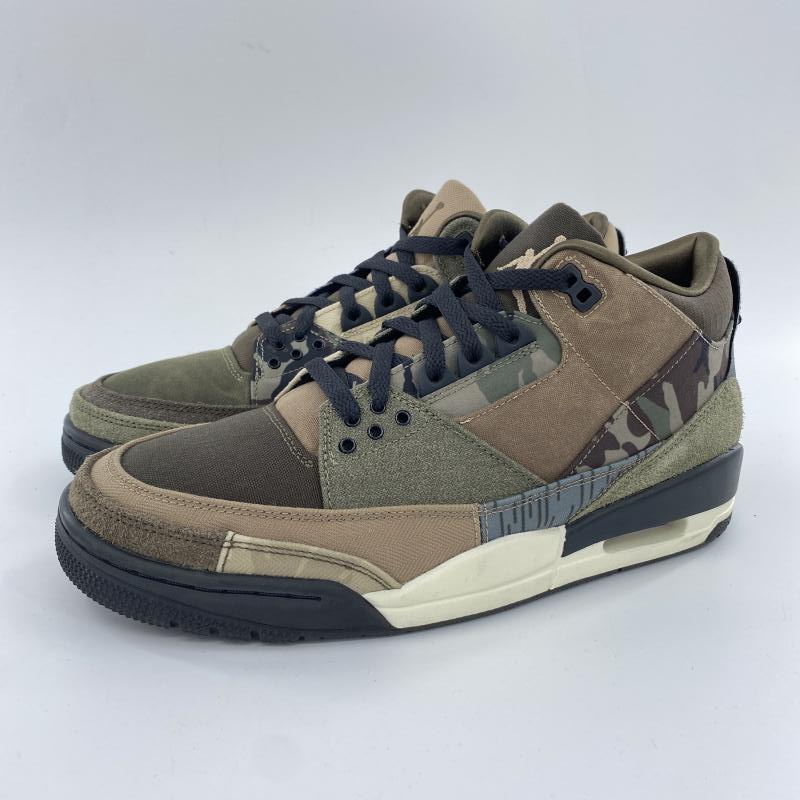 - 【中古】NIKE AIR JORDAN 3 Retro Patchwork スニーカー 28.5cm DD1830-200 カーキ ブラウン ナイキ[240010481801]
