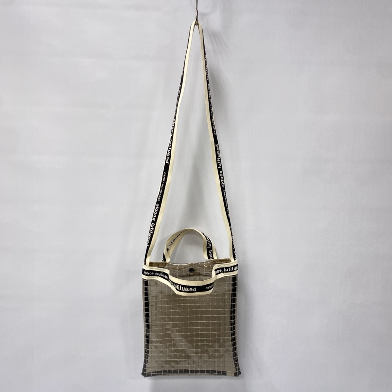 - beautiful people/ビューティフルピープル/ロゴテープ/PVC/ショルダーバッグ/開口部スナップボタン/ユニセックス/クリア素材