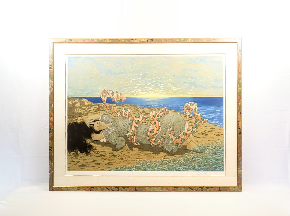 - 真作 工藤村正 1989年シルクスクリーン「オーシャン ブリーズ」画寸 101×74.5cm 米国LA在住 書道と絵画を融合 繊細で躊躇ないライン 11044