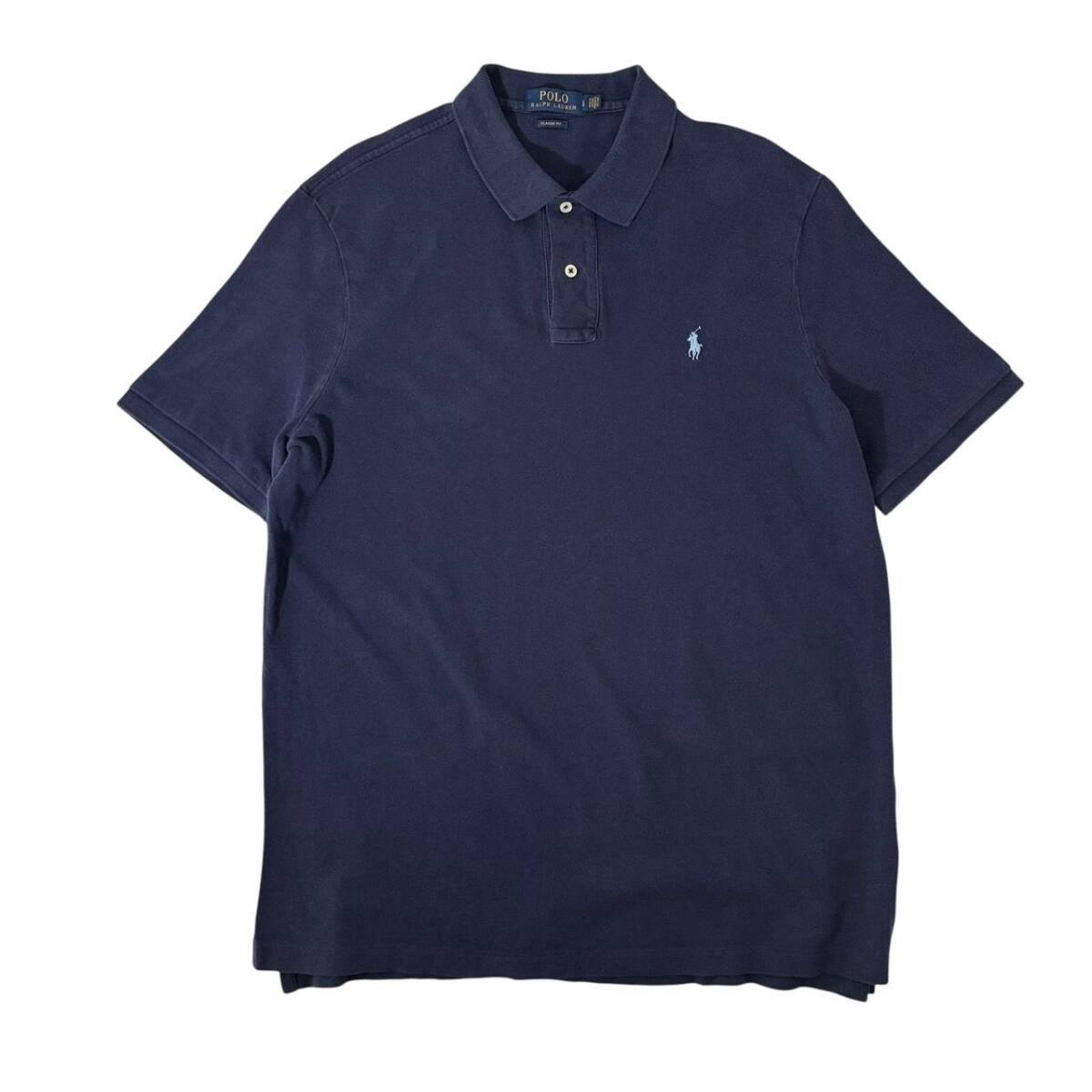 - 【L】古着 ポロ ラルフローレン ワンポイント 鹿の子 ポロシャツ ネイビー POLO RALPH LAUREN