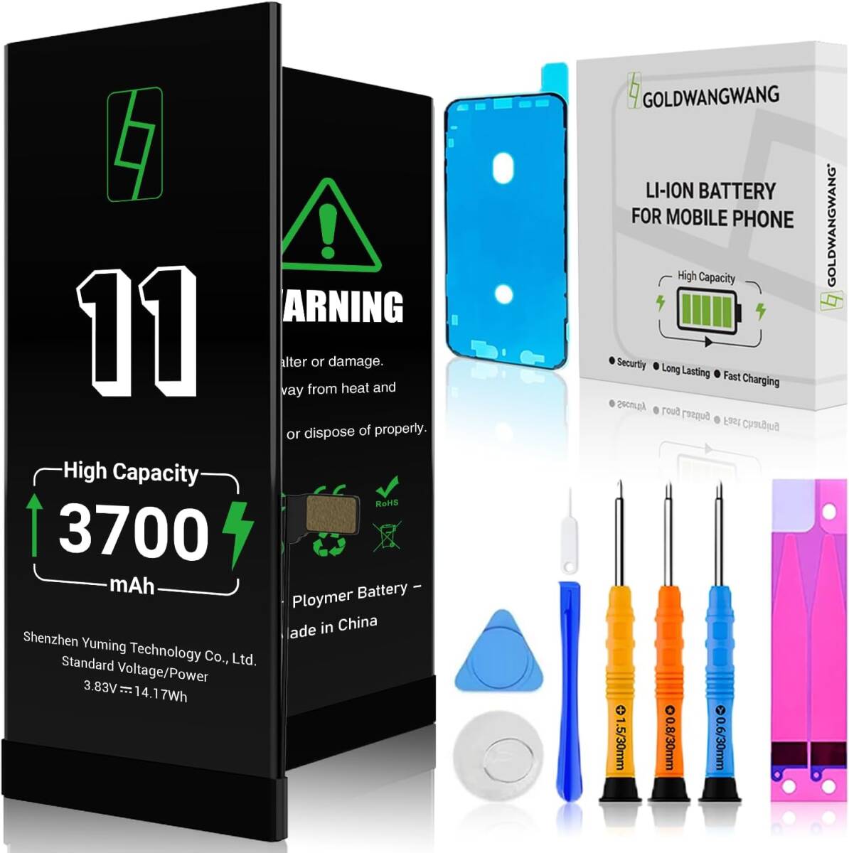 > iPhone 11 互換バッテリー 3700mAh 高容量、A2111/A2223/A2221 互換、0サイクル、修理キット、PSE/CE/RoHS/FCC認証