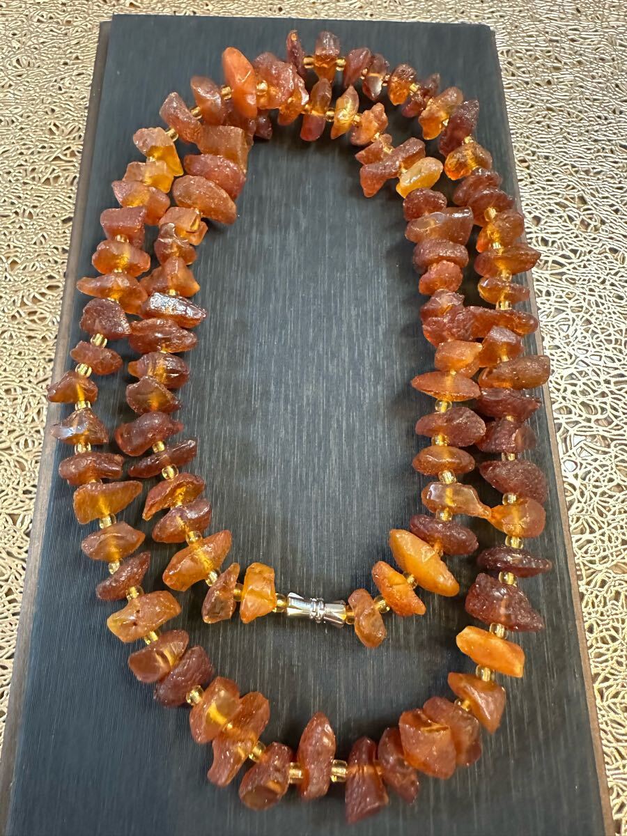 - T-757天然アンバー 本琥珀 蜜蝋 原石 ネックレス 天然保証