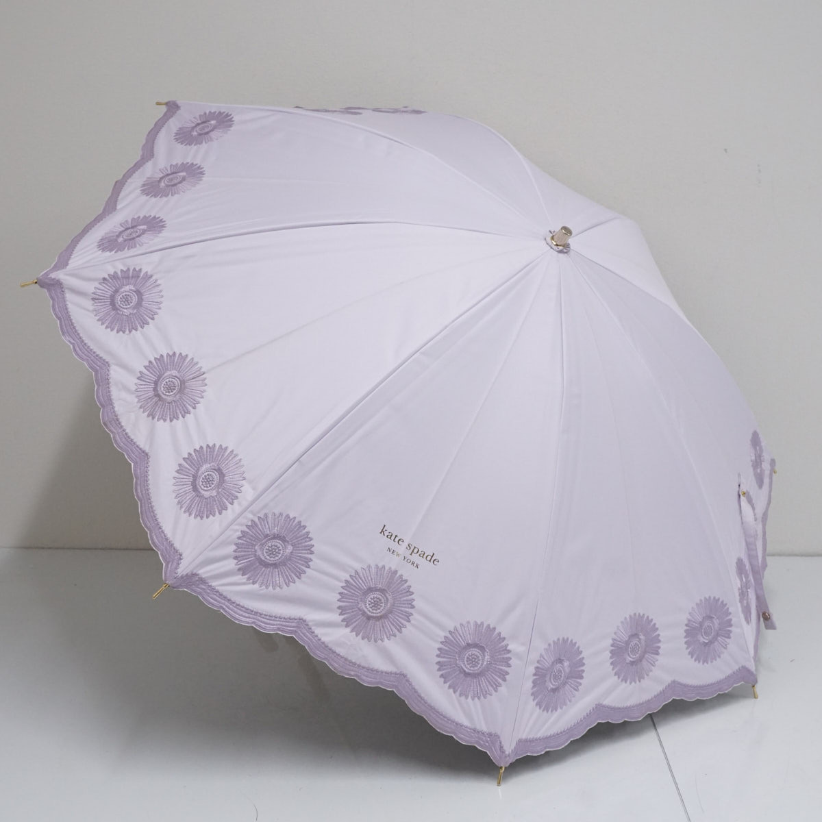 > 晴雨兼用日傘 Kate spade new york ケイトスペード USED美品 サマーシールドLi 刺繍 フラワー 軽量 ペールピンク 50cm S2807