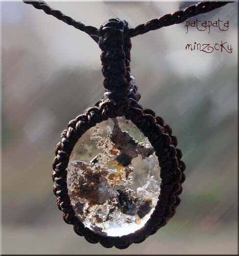 - ルチル・サン ペンダントトップ マクラメ 石包み フレーム編み ペンダント 天然石 パワーストーン