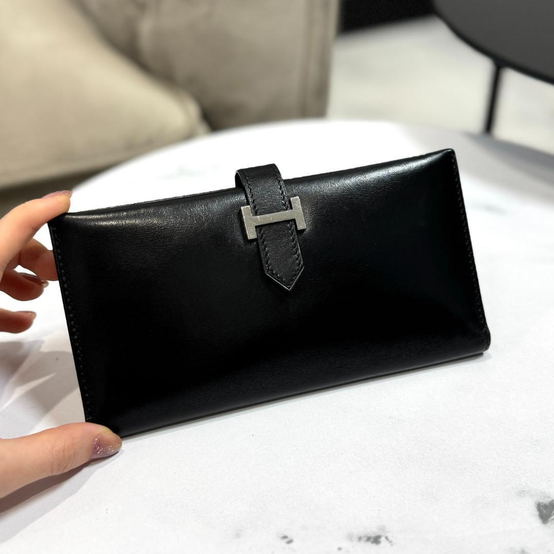 - 39004 エルメス ベアン クラシック ボックスカーフ ブラック □D刻印