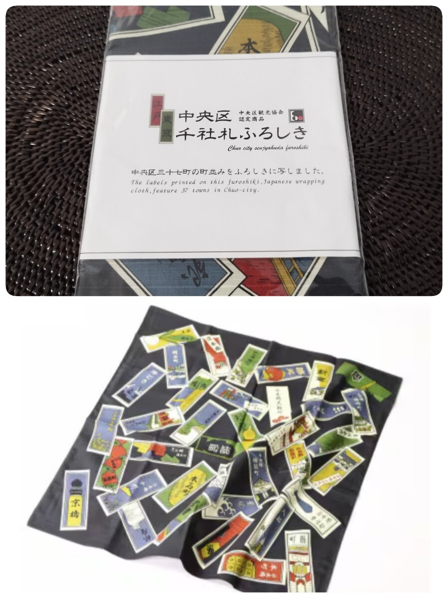 - 新品 中央区 千社札ふろしき 1枚 黒 約50cm×50cm 風呂敷