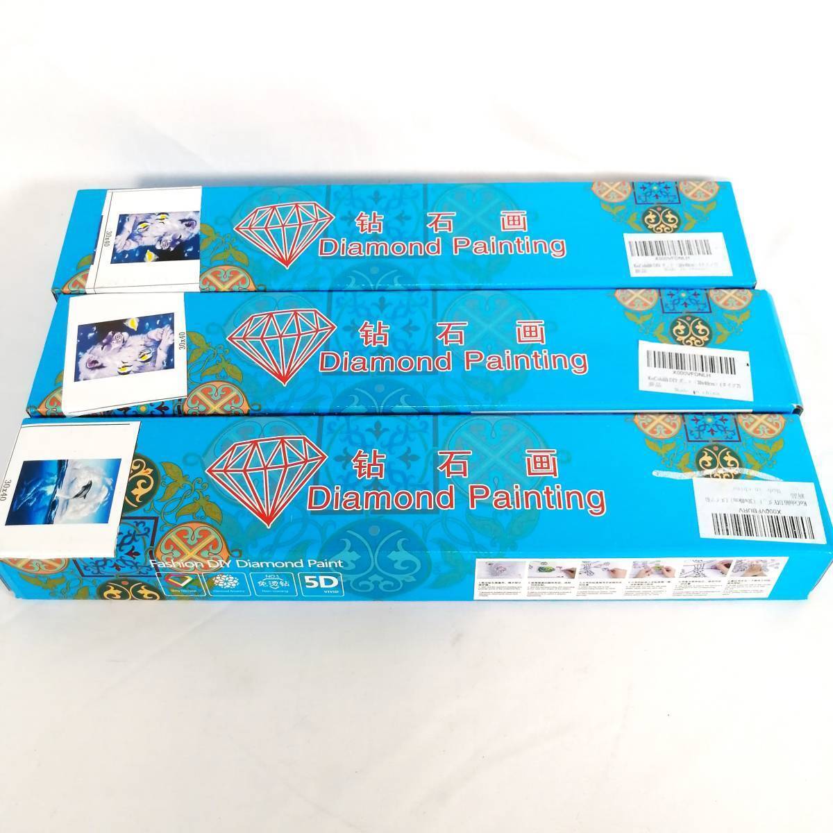 - 未使用 まとめ ダイヤモンドペインティング 3点セット タイプ7 アート 30×40 手芸 ライオン イルカ 2種類【アウトレット品】 22 00383