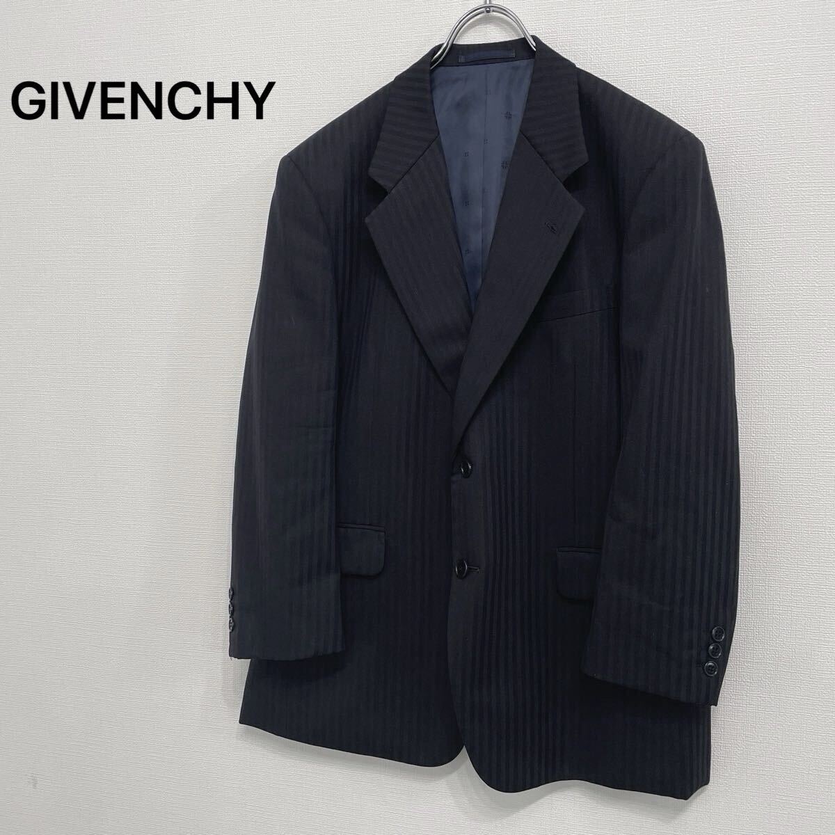 > 【446】ジバンシィ GIVENCHY テーラードジャケット ウール フォーマルスーツ ネイビー ストライプ ブレザー ジャケット