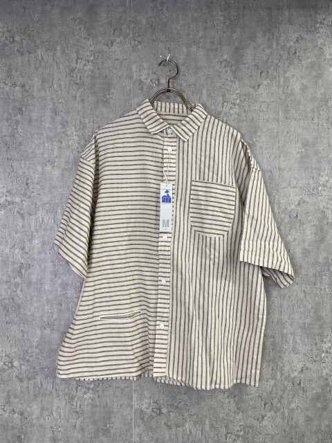 - 日本製 NOROLL ノーロール NORMAL SHIRT STRIPE S/S ノーマル シャツ ストライプ 半袖 ベージュ M 33918306■
