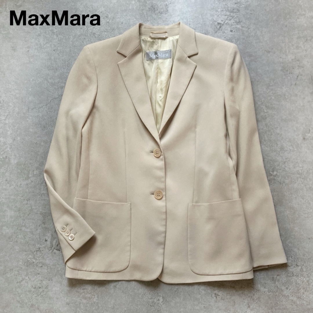 - *マックスマーラ 高級銀タグ テーラードジャケット スーツジャケット 2つボタン ベージュ38サイズ イタリア製 MaxMara