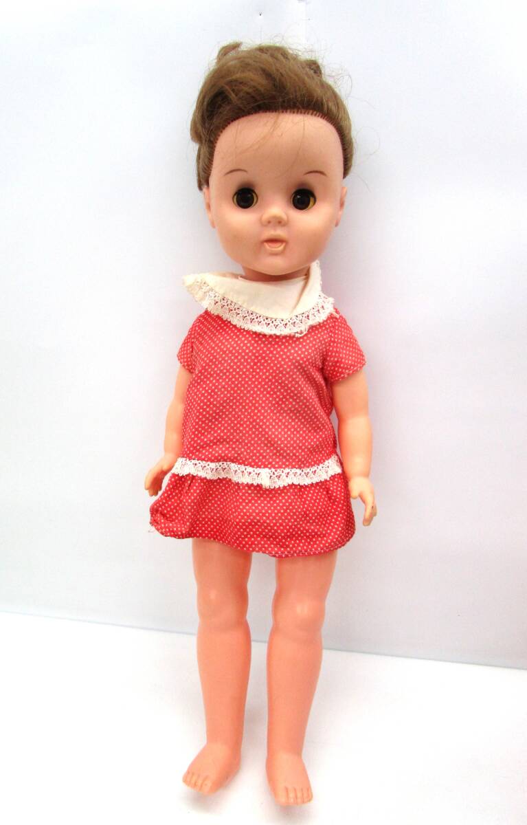 - 昭和レトロ メーカー不明 スリープアイ 女の子 人形 抱き人形 ドット柄 ソフビ プラスチックボディ 高さ:約51㎝