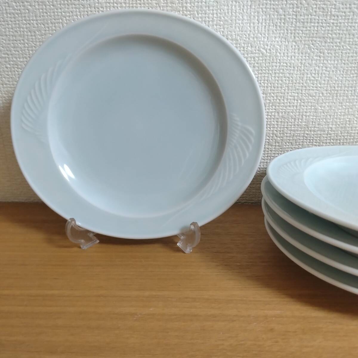 - 有田焼 掛ノ谷窯 薄青磁 青白磁 皿 5枚セット 翼柄 鶴 和食