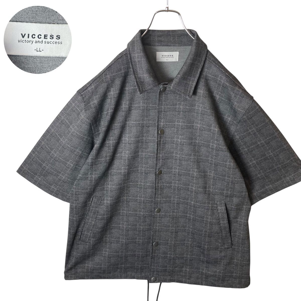 - グッドデザイン古着グレンチェック総柄 半袖コーチジャケットゆったりサイズ