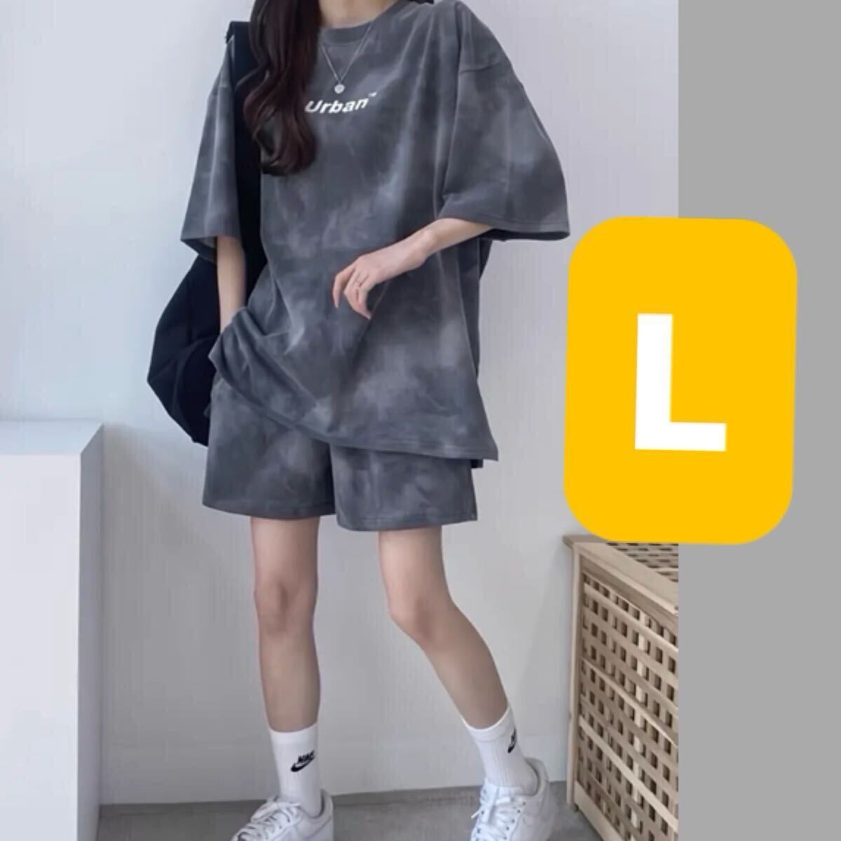 - 上下セット セットアップ タイダイ柄 グレー Tシャツ 短パン ルームウェア ユニセックス ゆったりストリート ナイトウェア グレー L
