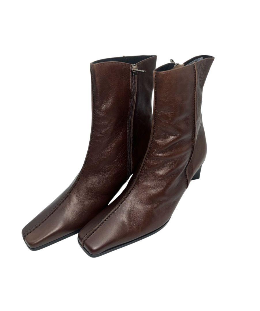 - 【ROMAN SHOES】スクエアトゥブーツ☆サイドジップ☆23.5cm☆ダークブラウン☆レディース靴☆ロマンシューズ