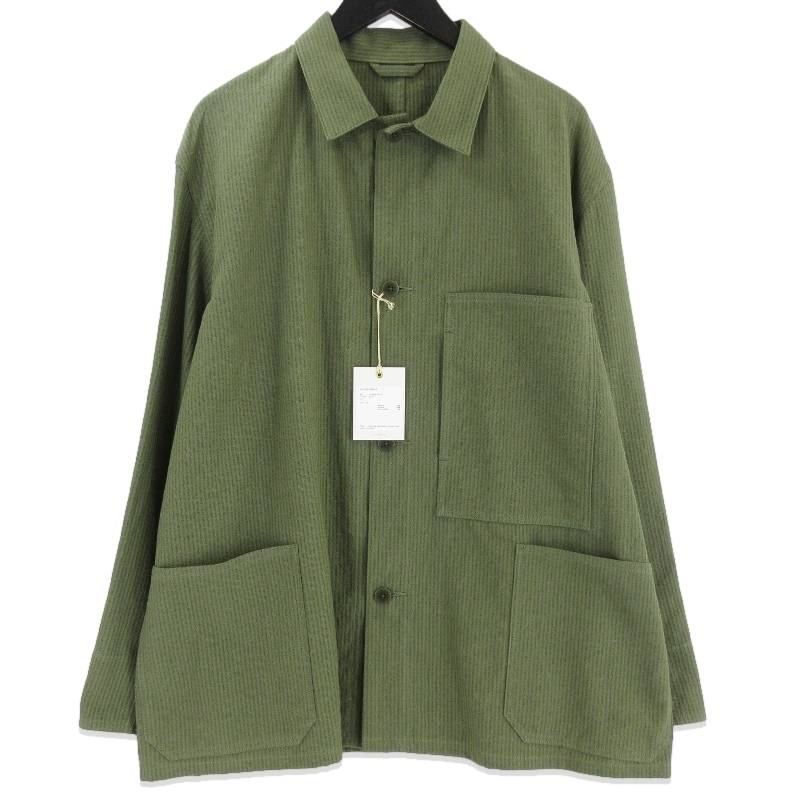 - 未使用 ULTERIOR アルテリア WASHI STRIPE COVERALL JKT ULBS26-GA117 和紙 ストライプ カバーオール オリーブ 4 タグ付き 71012785