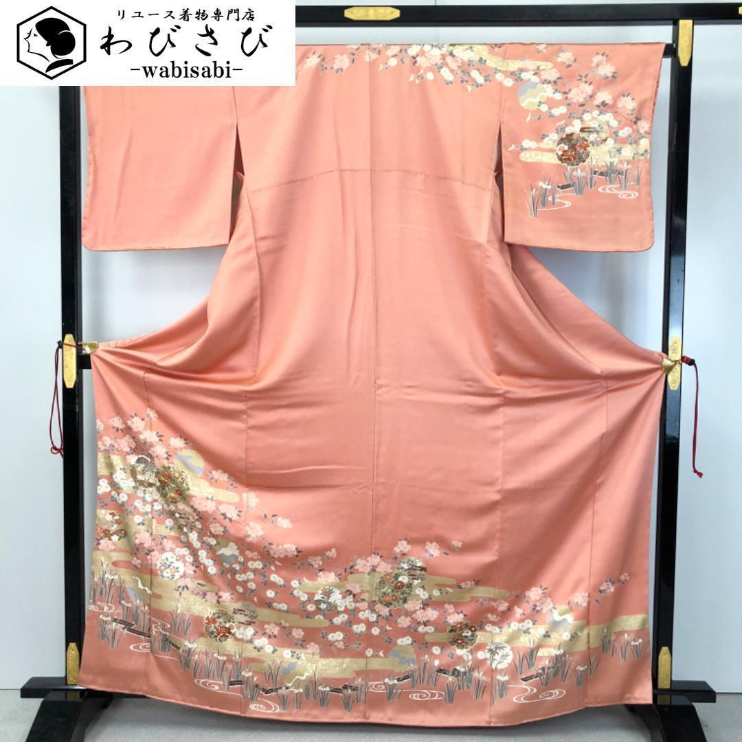 - 訪問着 四季の花模様 雪輪 金駒刺繍 金彩 東雲色 トールサイズ K-4953