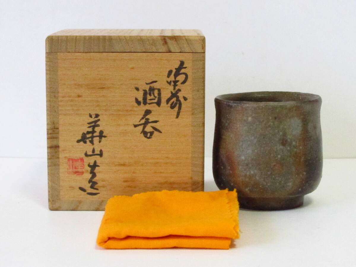 - ○清雅○ 岡山県無形文化財・四代松田華山 備前焼 ぐい呑 四方桟共箱