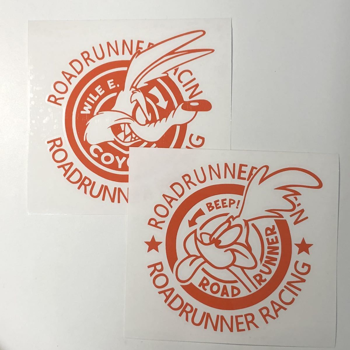 - ステッカー ROADRUNNER RACING 15cm ロードランナー左向き コヨーテ右向き 2枚セット オレンジ