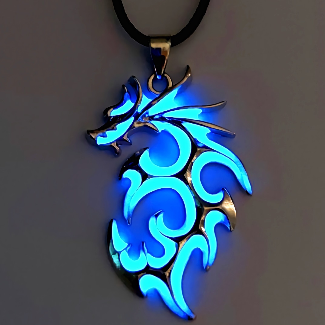 - 新品★送料無料★焔炎ドラゴン暗闇発光 5色青水橙桜緑プラチナ仕上925シルバーネックレス誕生日プレゼント旅行夏海連休ギフト国内発送