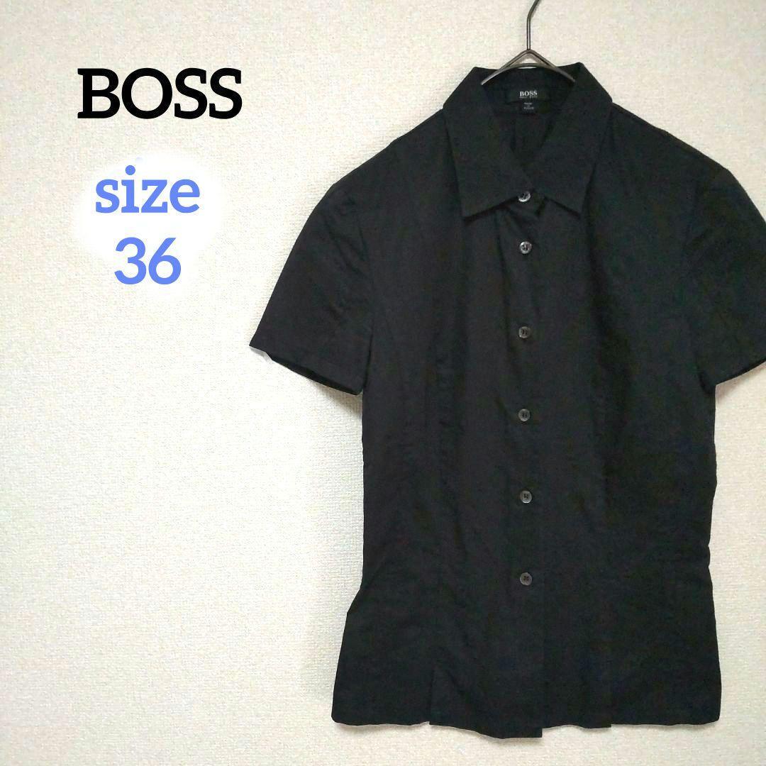 > HUGO BOSS ヒューゴボス 半袖シャツ コットン 綿 希少サイズ ブラック レギュラーカラー レディース 薄手