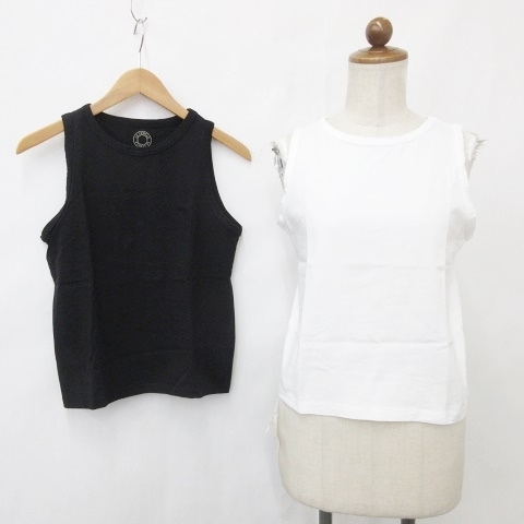 > ルセルクルパーロペ LE CERCLE par rope' カットソー 2枚セット ノースリーブ 丸首 綿 白 黒 ホワイト ブラック F