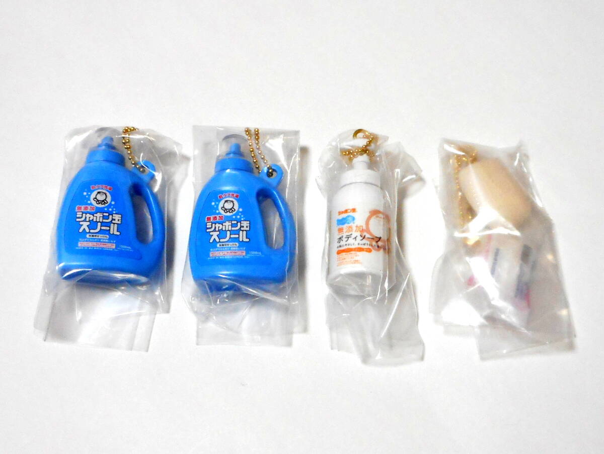 - シャボン玉石けん ミニチュアチャーム 3種 4個セット スノール 浴用 無添加ボディソープたっぷり泡 ガチャ