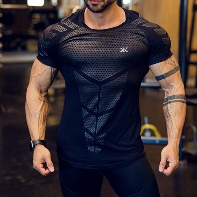 > 【黒 XL】メンズ ドライTシャツ 半袖 トレーニングウェア ジムウェア 加圧 ボディビル フィットネス