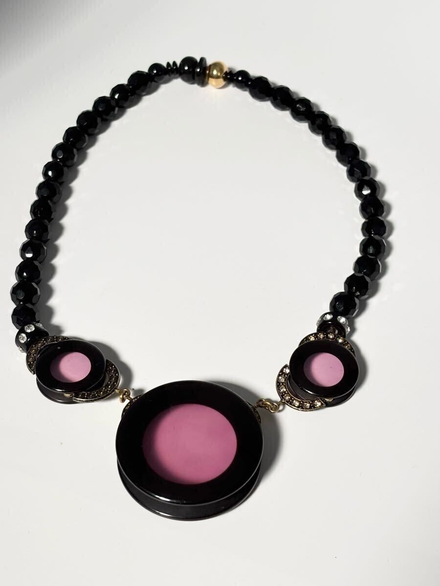 > 【USED】ヴィンテージ チャンキー ネックレス パープル×ブラック レトロモダン 昭和 サイケデリック コスチュームジュエリー