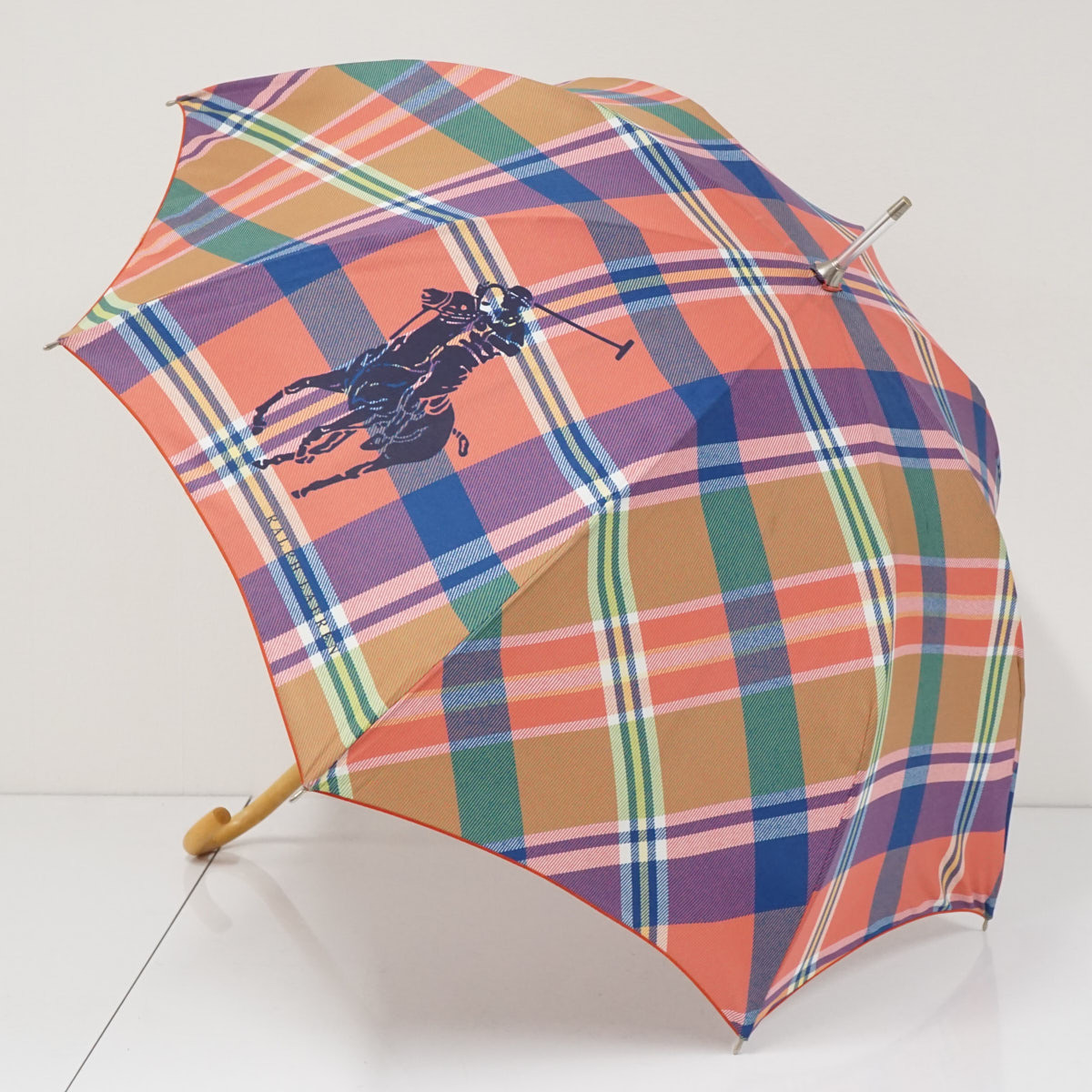> 傘 Ralph Lauren ラルフローレン USED美品 チェック ポロポニー 1枚張り 高級 55cm S2845