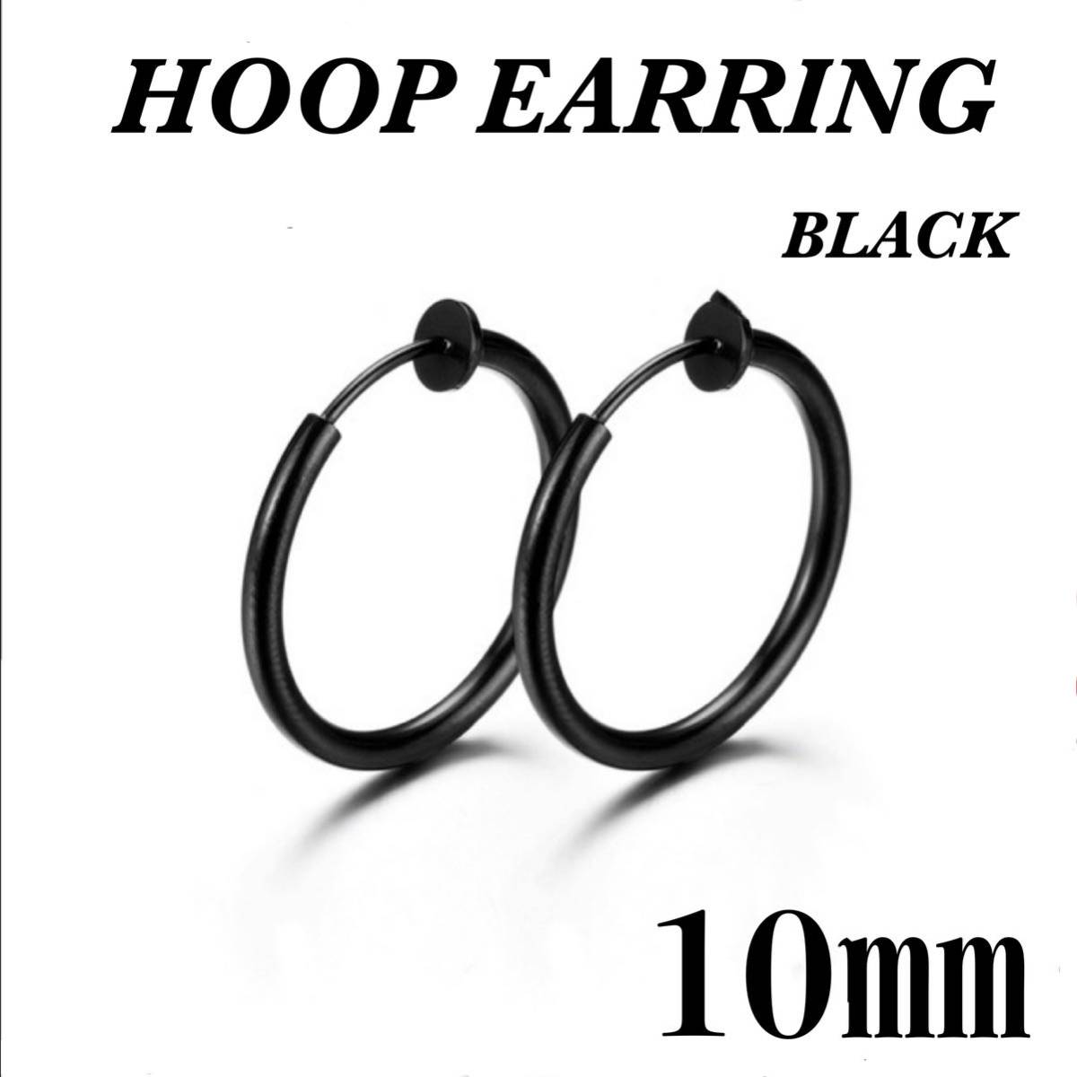 - フープイヤリング ブラック ステンレス 10㎜ 2個セット