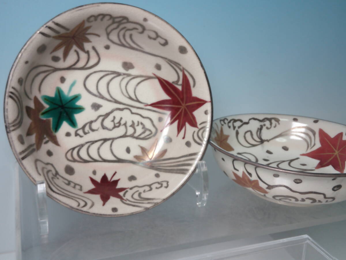 - ☆お料理屋さんの器 松篁作 乾山写 色絵 紅葉に流水文 鉢 二客 向付/茶懐石/割烹/日本料理