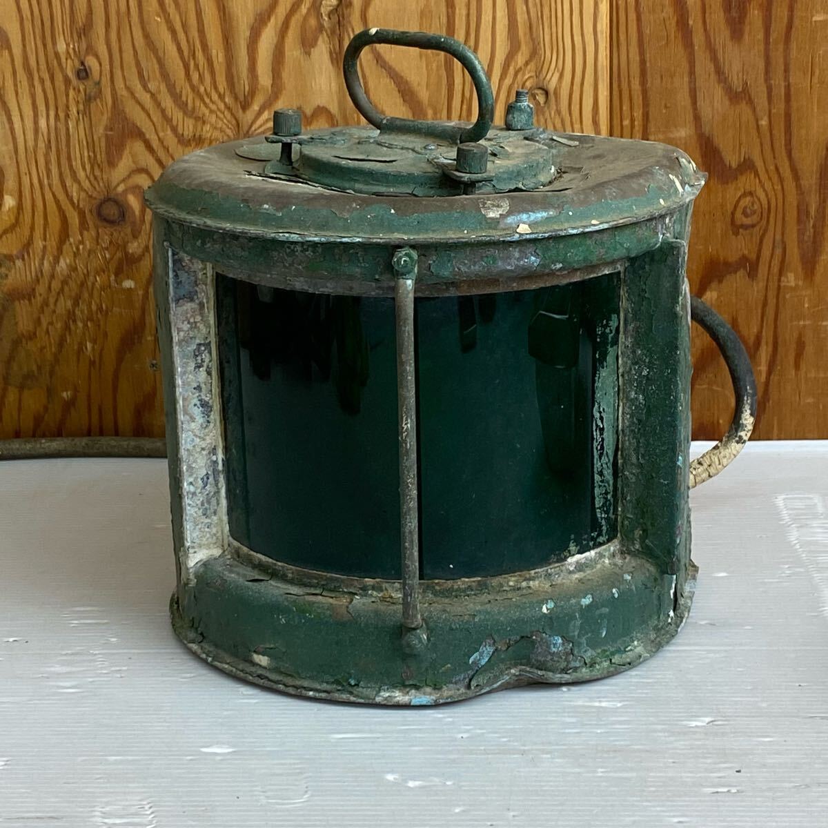 - M0630707B 船燈 ランタン 船灯 照明 インテリア 昭和レトロ ライト 緑 アンティーク 当時物 中古品 現状品