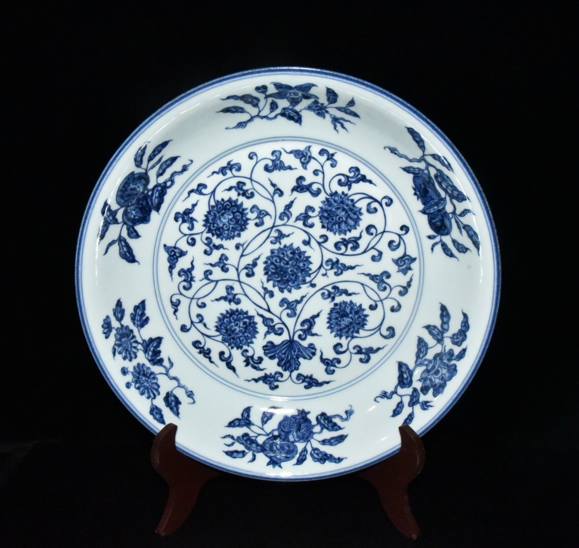 - 【超珍館蔵】明 永樂年製款 古陶瓷品 青花 花卉紋 供盤 陶藝 古賞物 古董品 古美術品 時代物 旧家蔵出 稀少珍蔵品