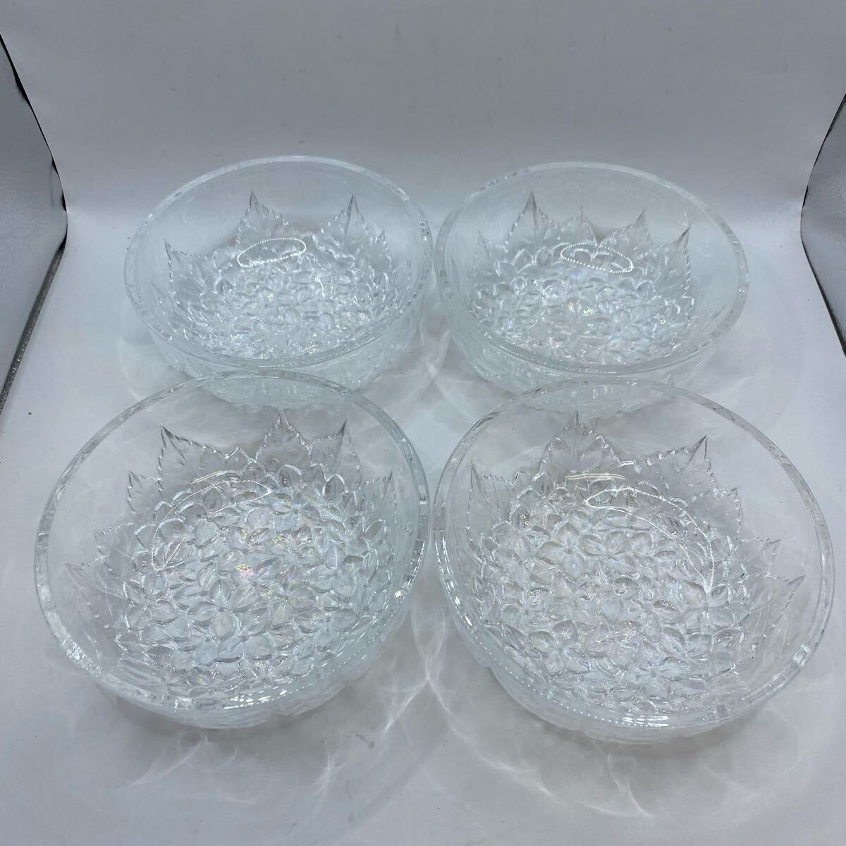 - M0630709B HOYAクリスタル ガラス器 あじさい模様 紫陽花 保谷クリスタル 小鉢 当時物 中古品 現状品