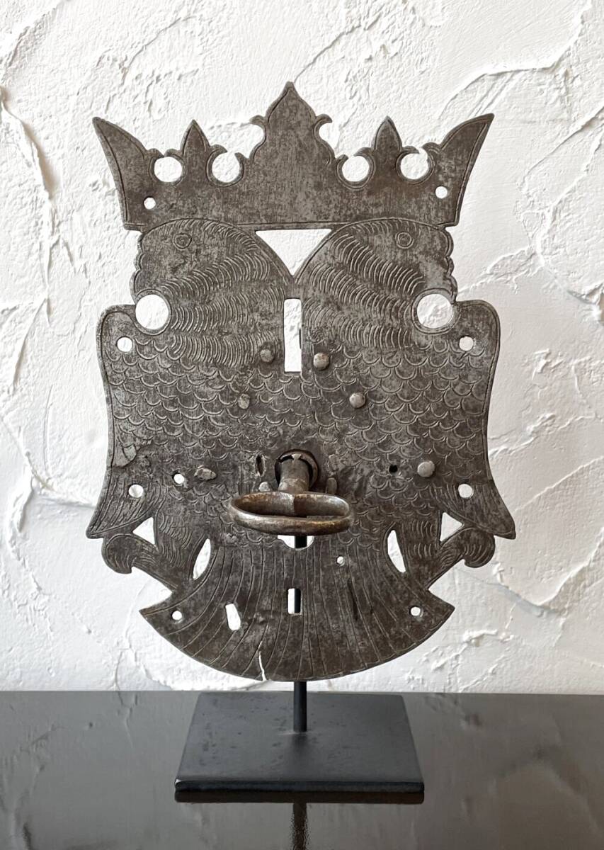 > 17世紀 ドイツ 鉄製 アンティーク鍵 双頭の鷲 紋章 錠前 装飾カギ 神聖ローマ帝国 17c German Iron Lock Escutcheon Double-Headed Eagle