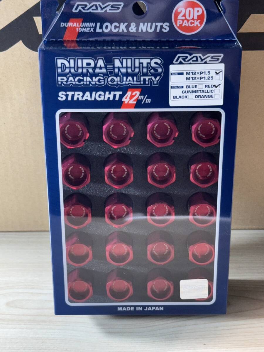 - 【即納】RAYS レイズ DURA ジュラルミンロック&ナットセット L42 M12 P1.5 20個(5H用)レッド