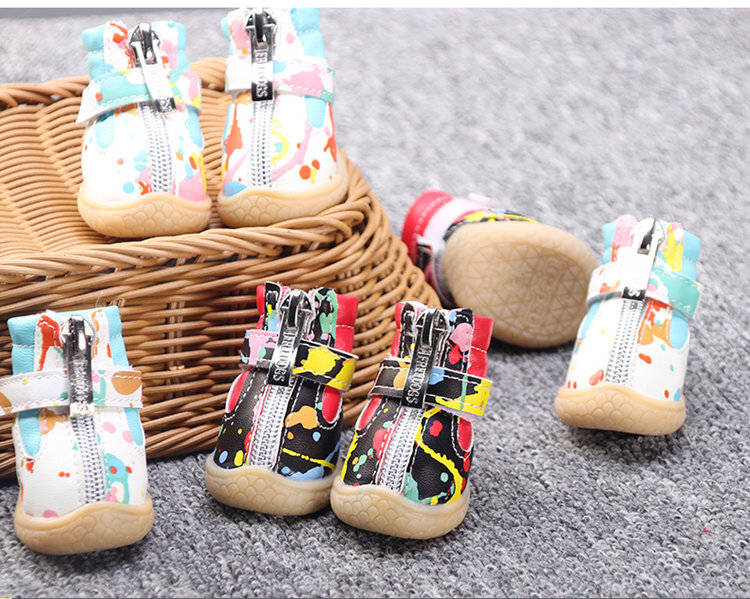 - 犬の靴 カジュアルシューズ スニーカー 厚底 肉球保護 ペットグッズ ペット用品 ファスナー仕様で着脱し易く 4ピース