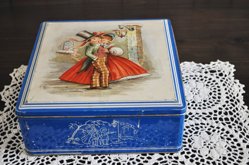 - ベルギー・ヴィンテージTIN缶/角/男の子&女の子[3490]