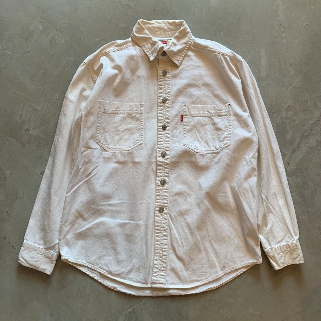 > 【M/L】Levi's 長袖シャツ ホワイト 白無地■ビンテージ オールド アメリカ古着 リーバイス 2000s Y2K 赤タブ 白シャツ
