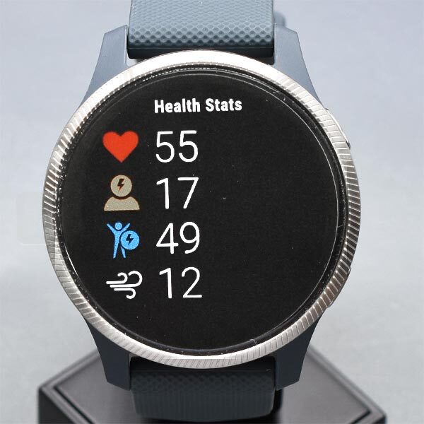 中古 ガーミン GARMIN Venu Granite Blue / Silver 010-02173-07 ユニセックス 室内 ヨガ 運動 suica対応モデル