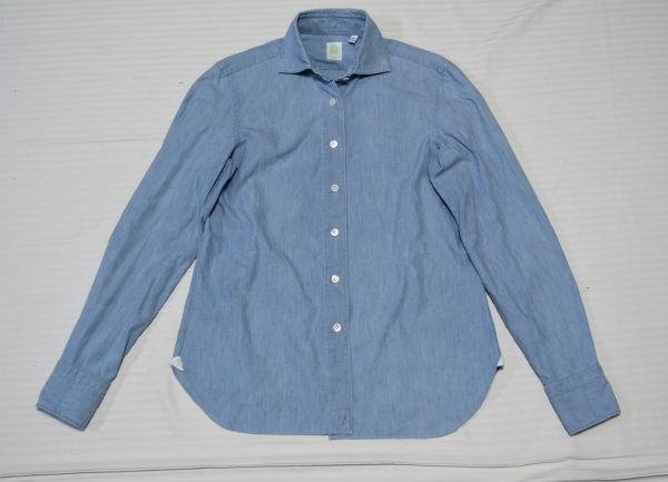 - ★Finamore★【フィナモレ】★綿・コットン・イタリア★着心地良い長袖ダンガリーシャツ・インディゴブルー40