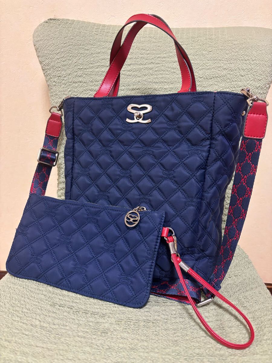 - SAVOYトートバッグ ミニポーチ付き 紺赤