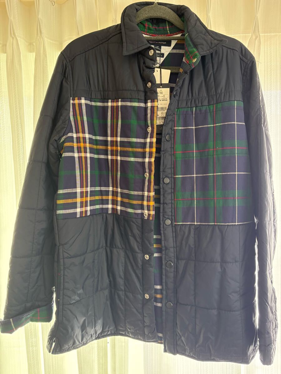 > トミーヒルフィガー タータンチェック切替 スナップボタン 中綿ジャケットSサイズ