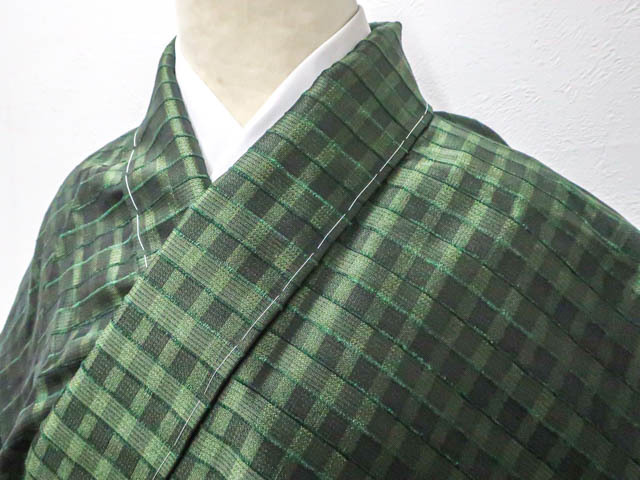 - 《古美術京松》リサイクル着物 紬 二部式 岡重 市松模様 残布・反端付き 未使用品 身丈約53cm 裄丈約60.5cm sok7z06-10